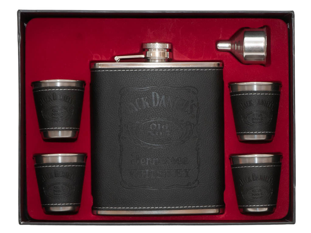 Set cadou Jack Daniels Black este un cadou minunat pentru fiecare bărbat. Setul cadou include o ploscă de 540 ml, 4 păhărele, udă inox. oţel.